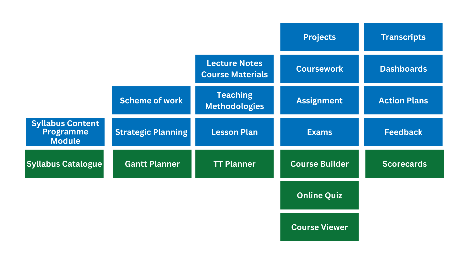 All your syllabus catalogue, programme module and curriculum contents can be imported or designed directly with the Syllabus Editor.